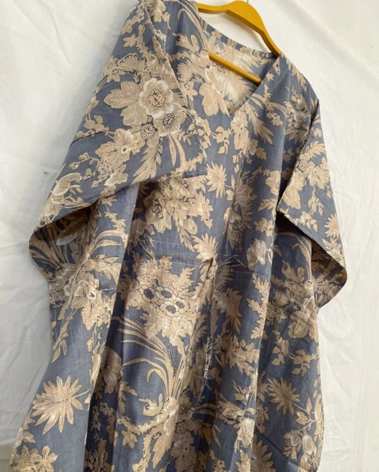 Grey floral block print cotton kaftan dress for women partywear woman clothing