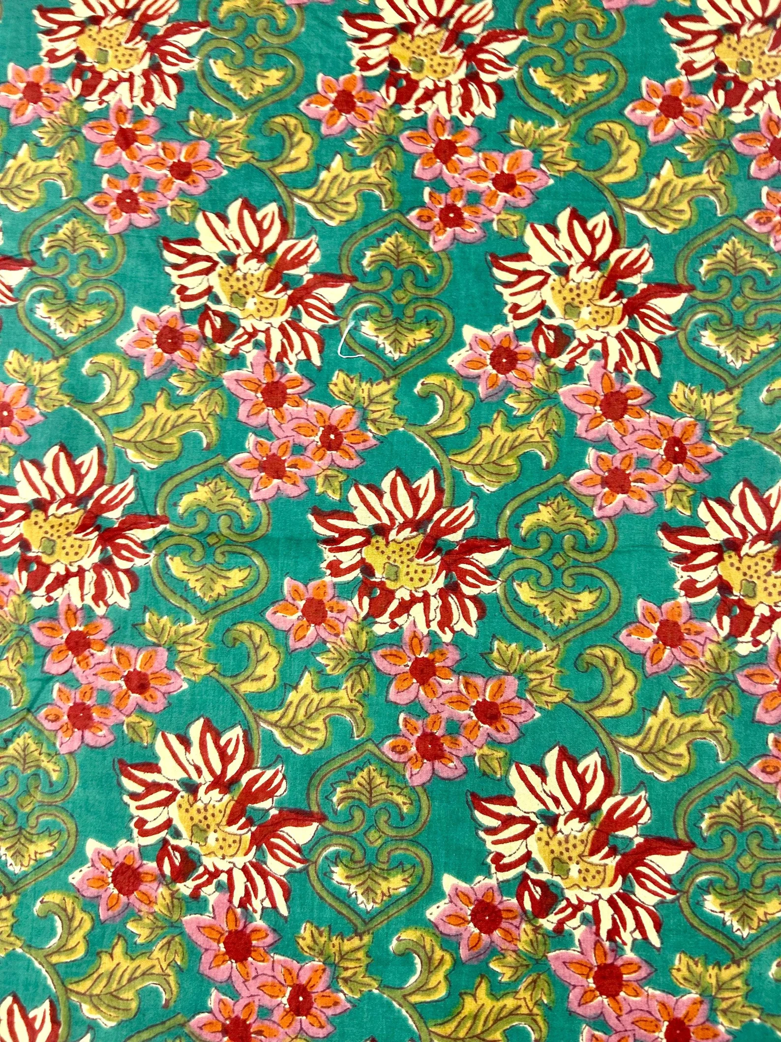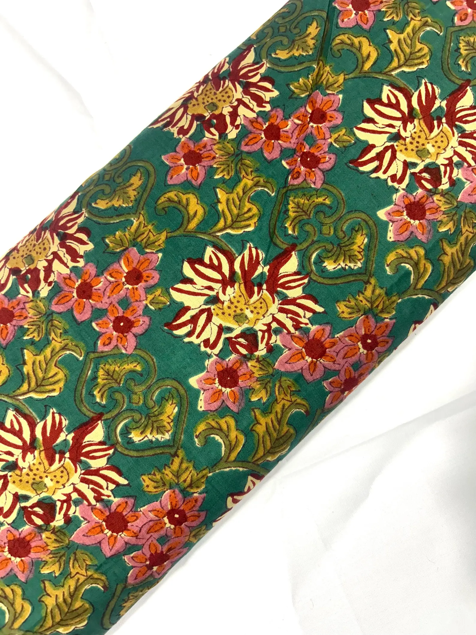 Hand Block Print Fabric, Red And Yellow Floral Print Fabric, Apparel Fabric, Soft Cotton Fabric, Fabric By The Yard