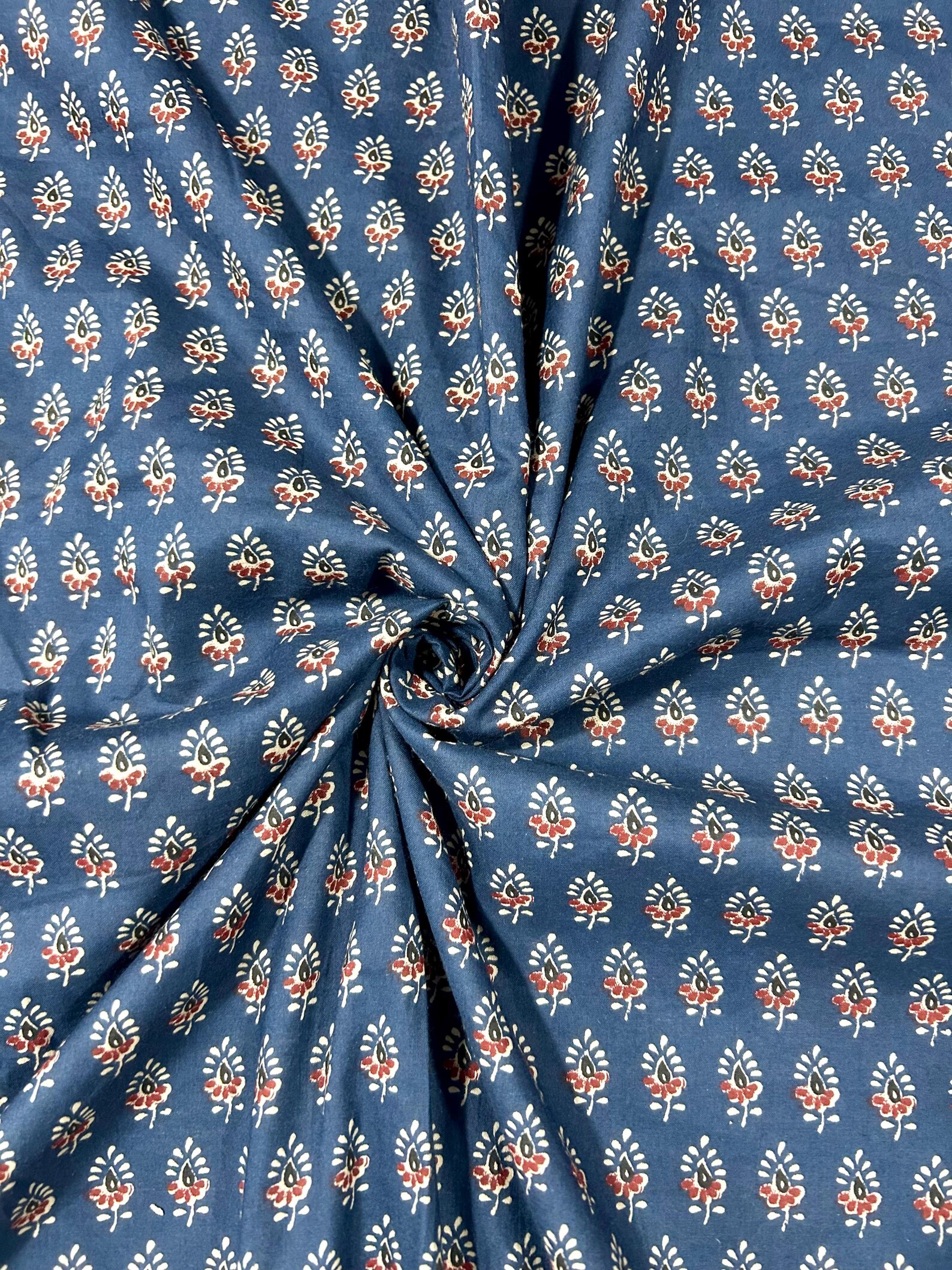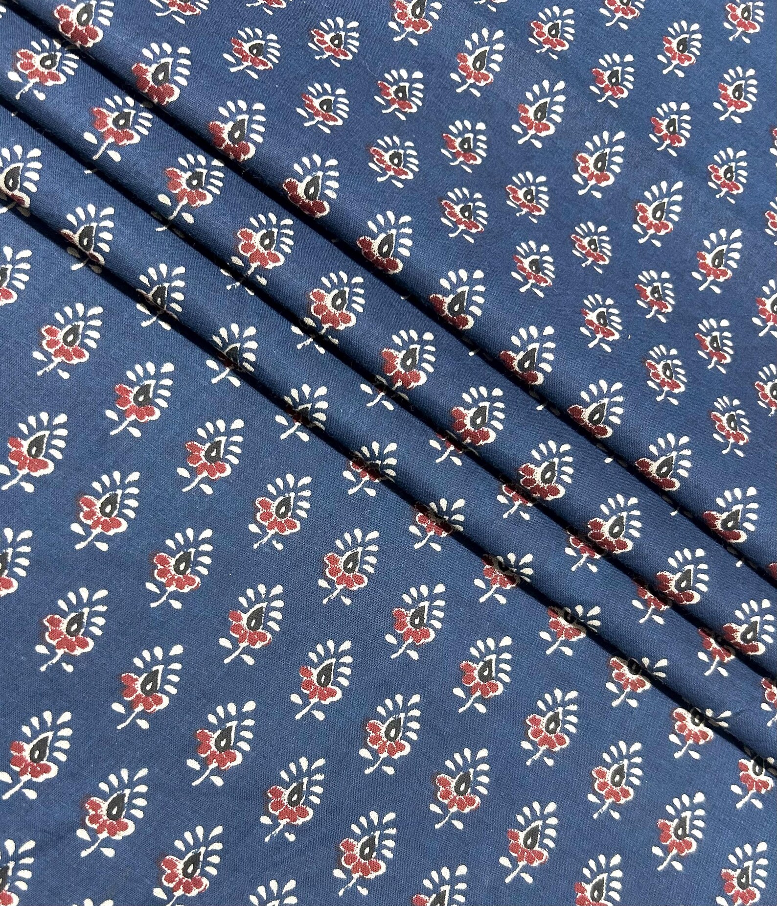 Indian Blue Floral Print Fabric, Fabric By The Yard, Hand Block Print Fabric, Dressmaking Fabric, Soft Cotton Fabric For Dress, Kids Fabric