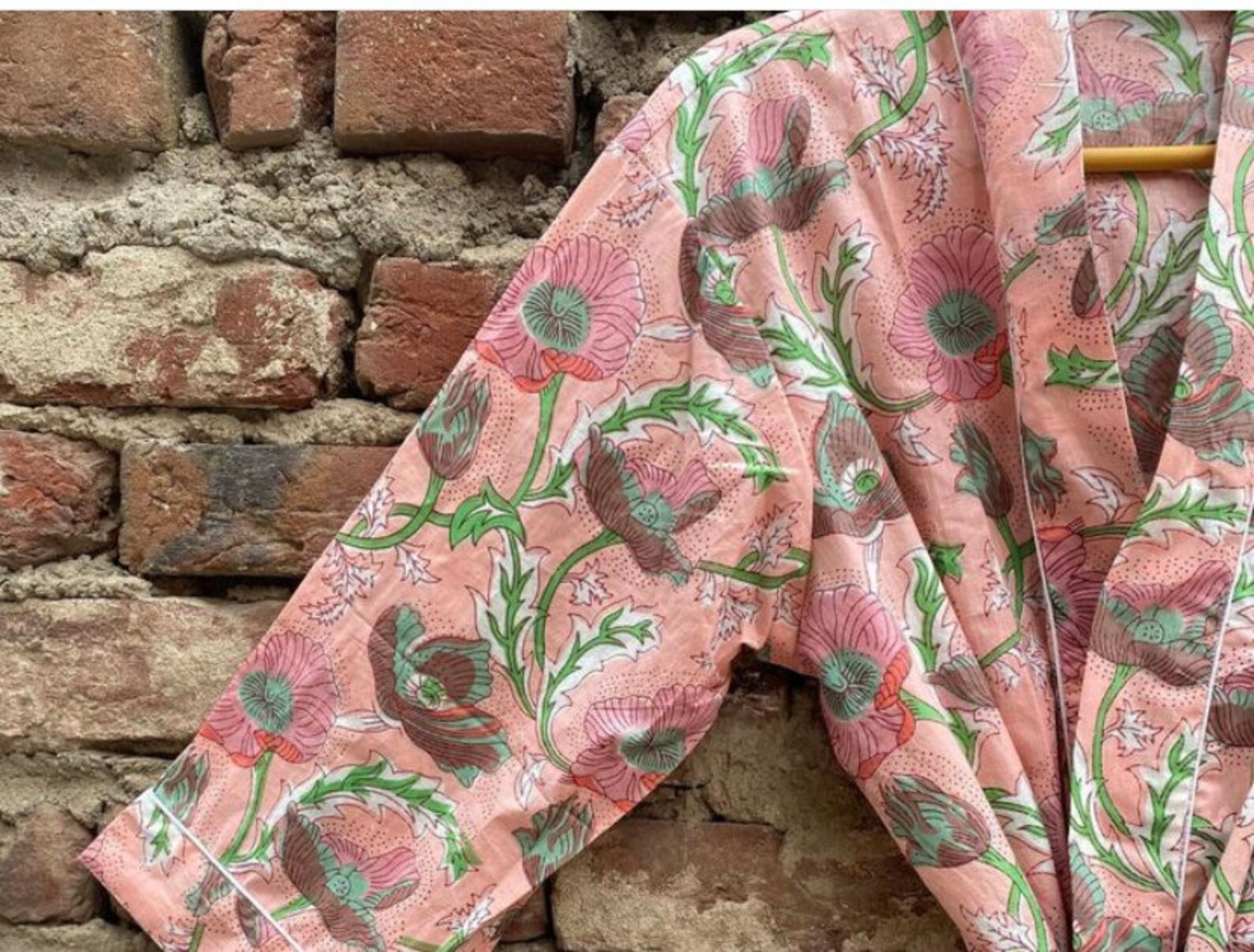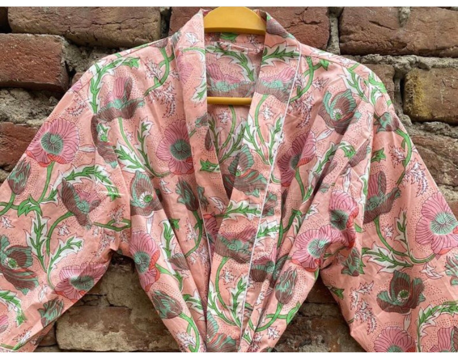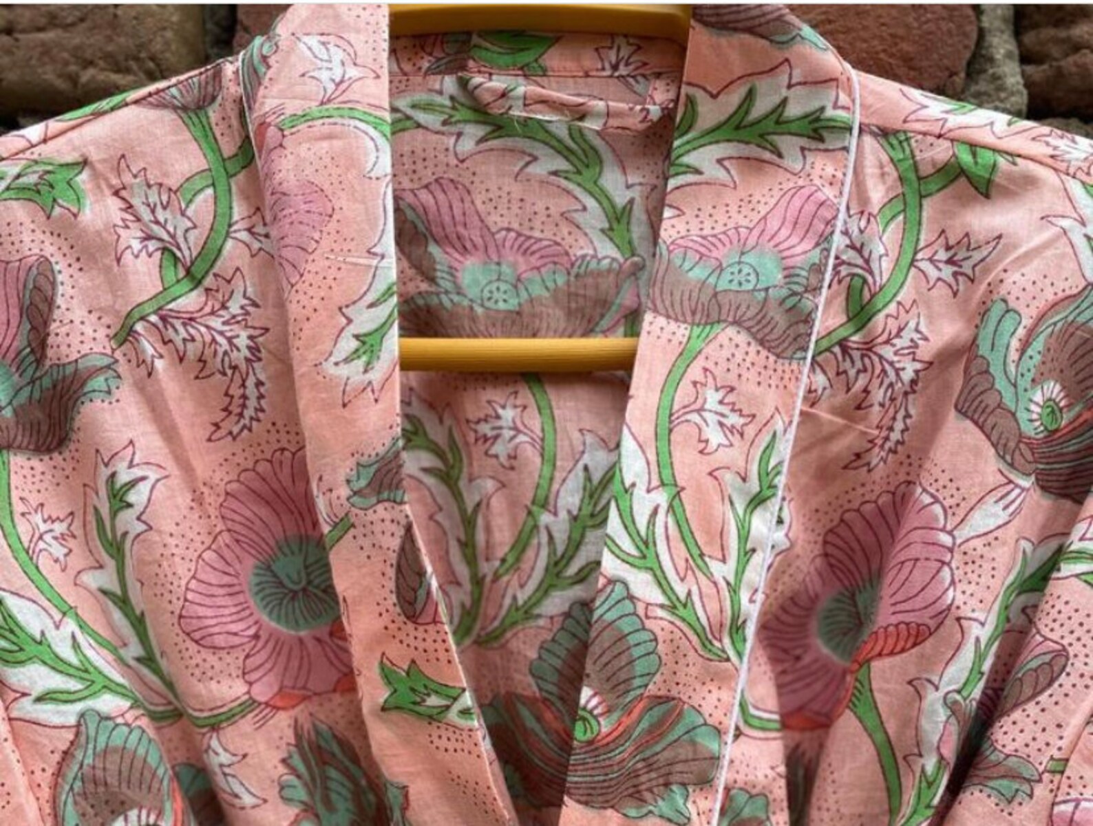 Be the first to review “Pink Floral Block Print Kimono Dress For Women”