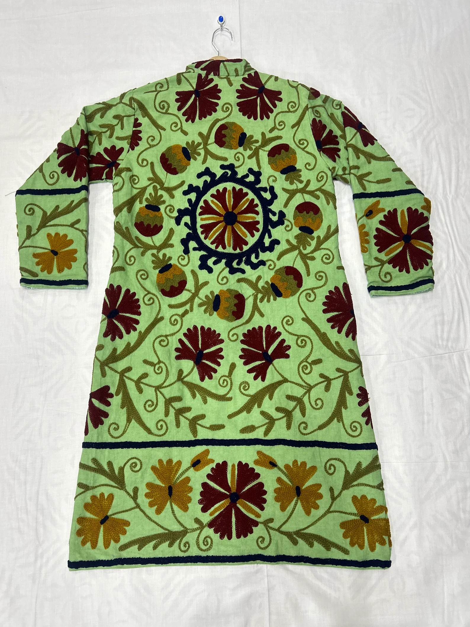 Be the first to review “Suzani Hand Embroidery Long Jacket For Man And Woman Green Colour In Floral Design”